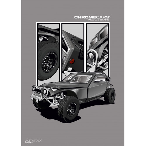 Unsere Poster vom "Fast Attack" im Comic-Design sind eine Hommage an das legendäre Filmfahrzeug aus dem Klassiker Fast and Furious 7 welches sich in unsere Chromecars Movie Stars Collection befindet.